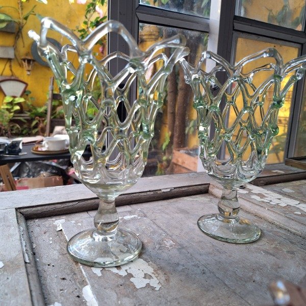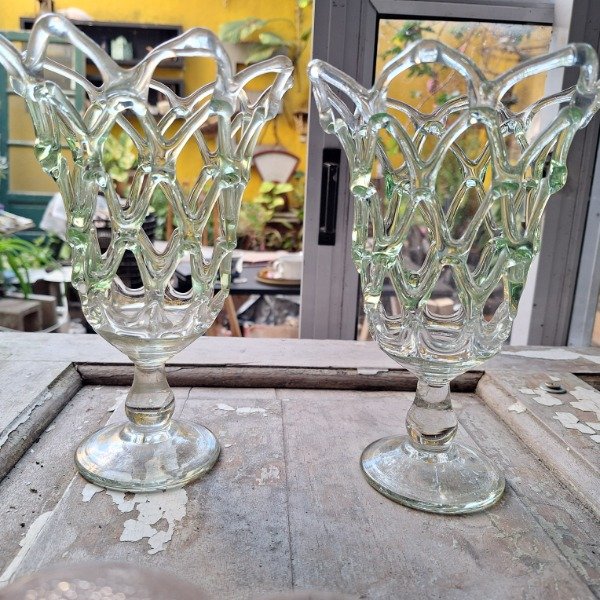 Copones fanaleles o floreros de vidrio artesanales. 21cm de altura y 16cm de diámetro. El precio es por los 2.