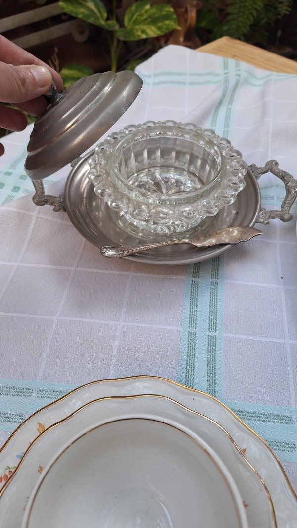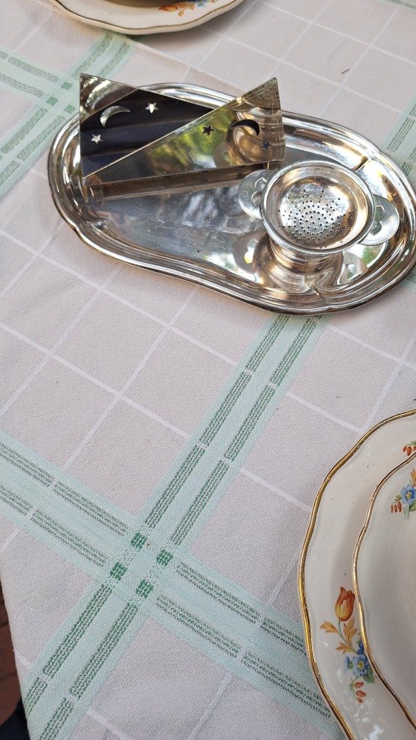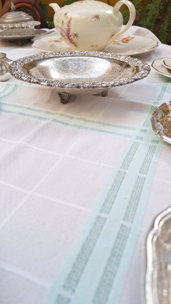 Mantel de granité con cuadrillé verde agua y blanco. 150cm x 130cm