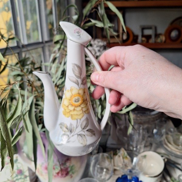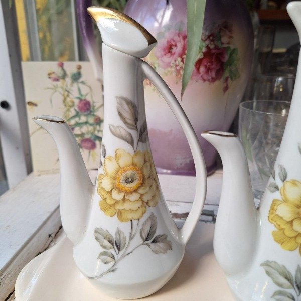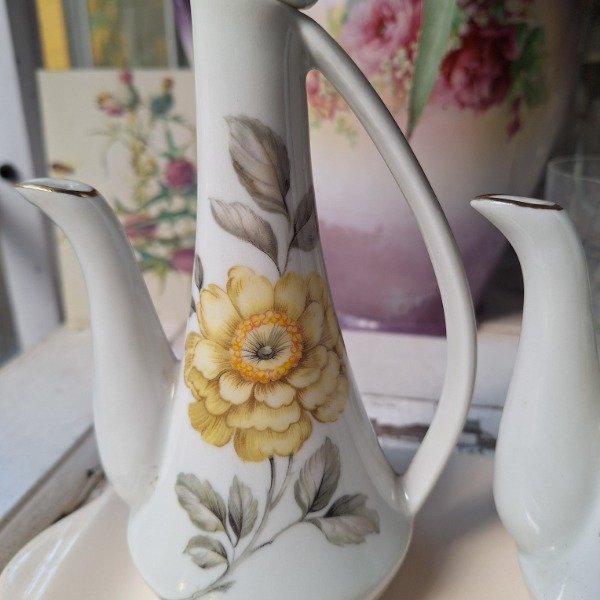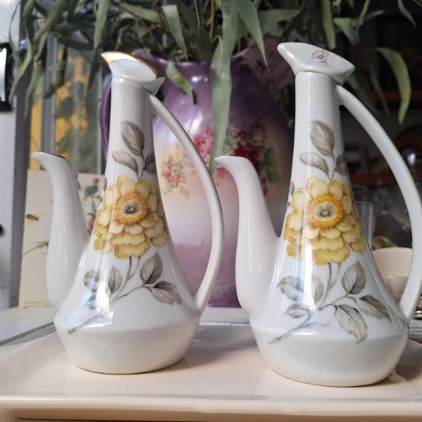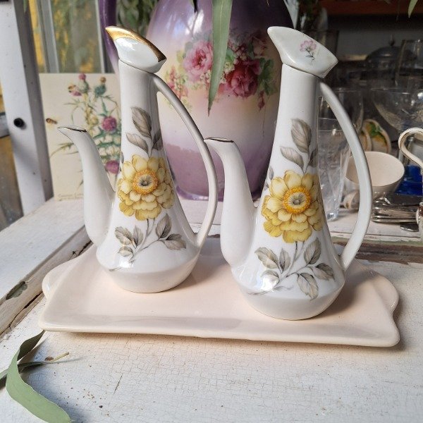 Aceitera y vinagrera de porcelana Viena con flores. No incluye bandeja