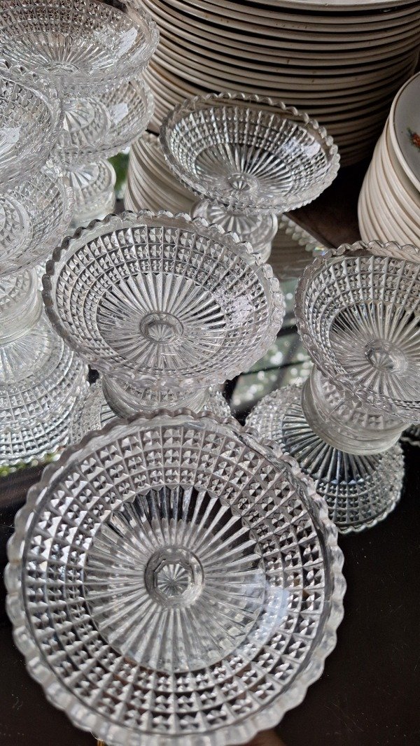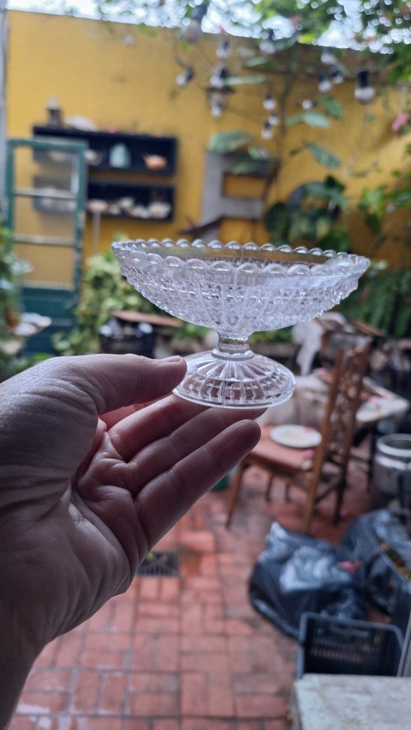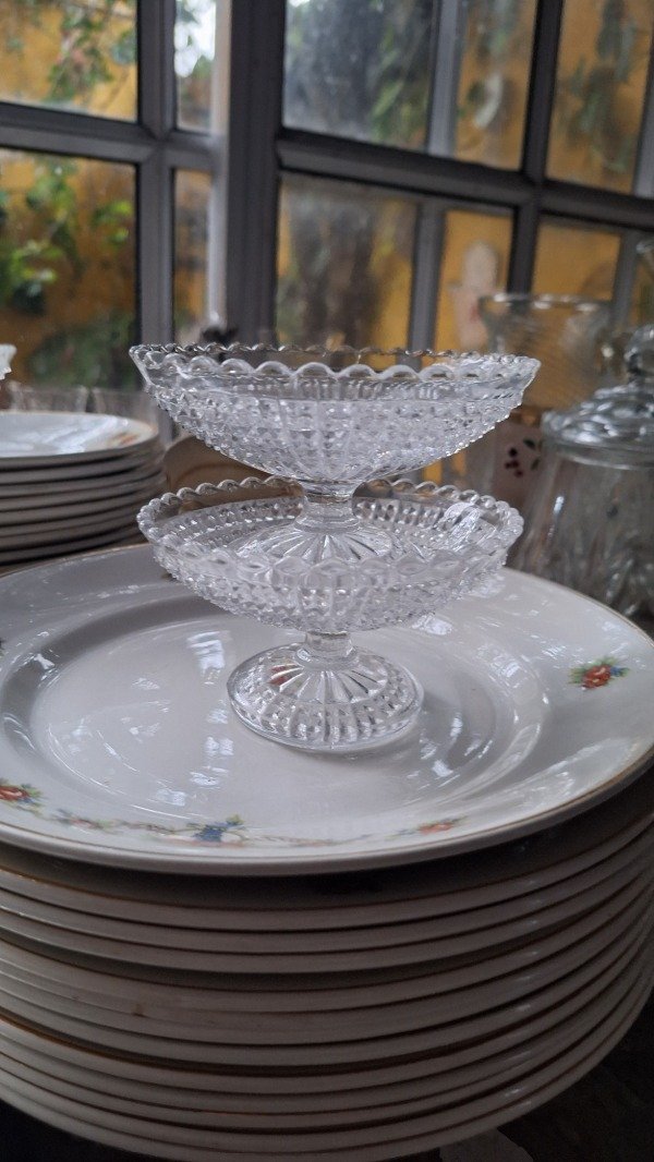 Delicadas copas para postre de vidrio prensado. 10cm de diámetro y 6cm de altura. El precio es por las 5.