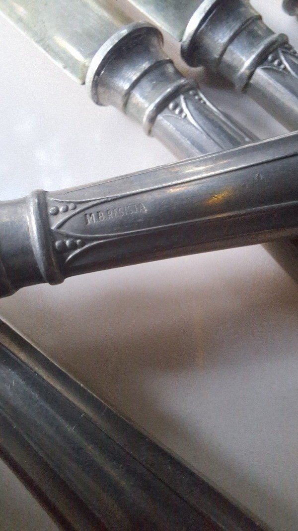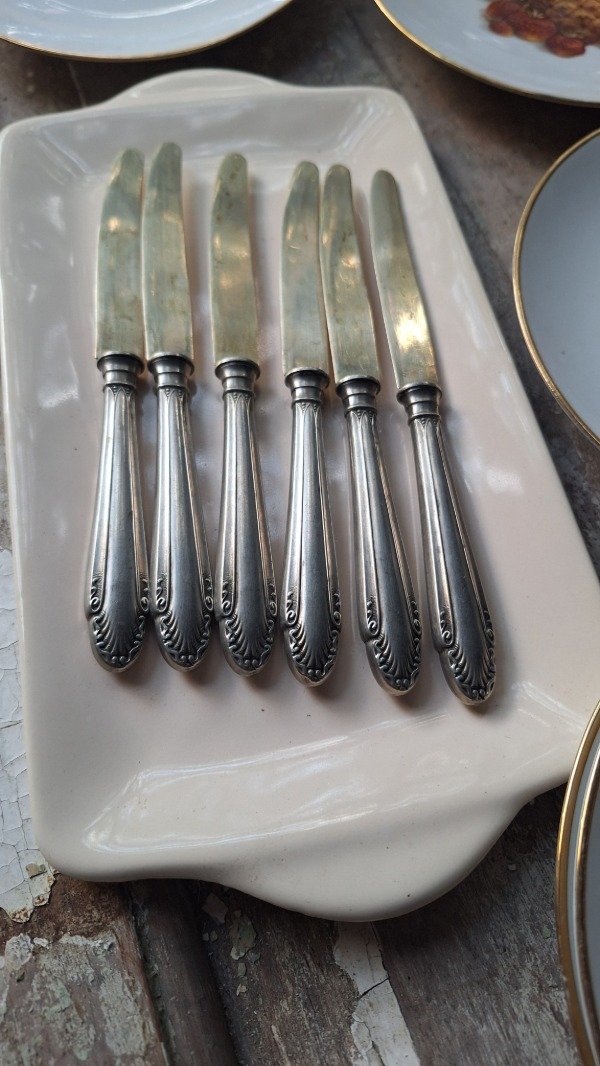 Cuchillos para manteca o postre de 17cm de largo con empuñadura bañada en plata de la firma MB Resista. El precio es por cada uno