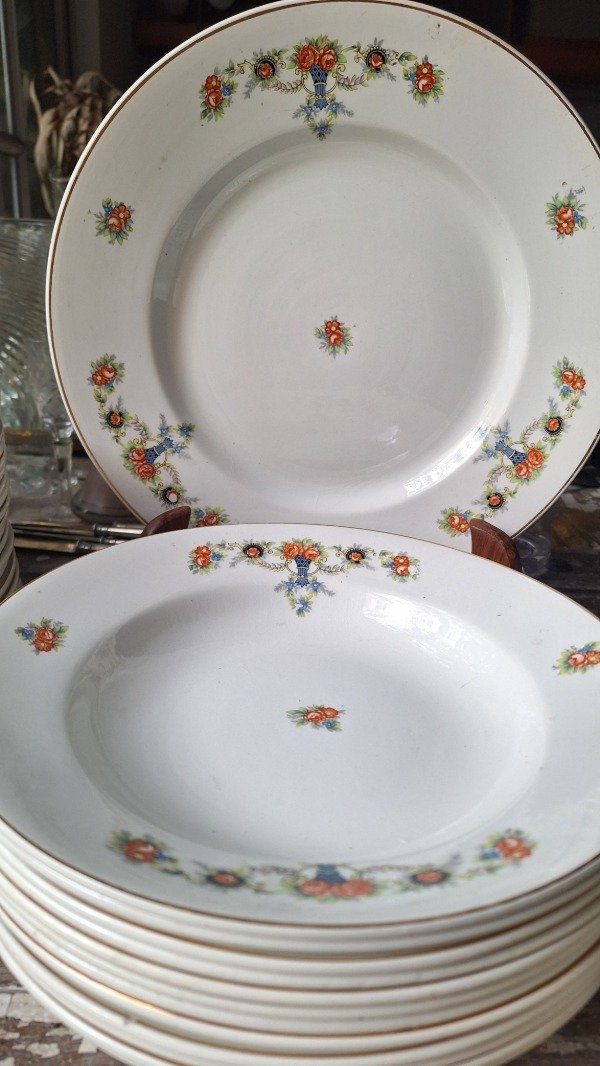 Platos hondos franceses con flores. 22,5cm de diámetro. El precio es por cada uno